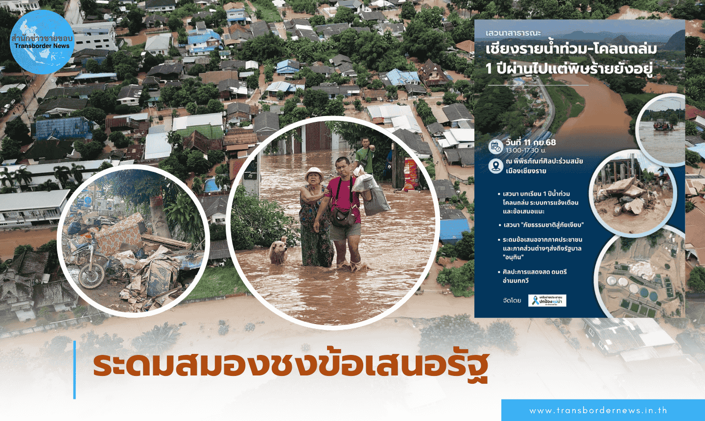 ระดมข้อเสนอแก้ปัญหาสารพิษปนเปื้อนแม่น้ำกกสายรวกโขงชงรัฐบาลใหม่ ภาคประชาชนเชียงรายจัดงานครบ 1 ปีภัยพิบัติน้ำท่วม-โคลนถล่ม หวั่นข้าวนาปีนับแสนไร่รับผลกระทบ-จี้รัฐบาลไทยเป็นเจ้าภาพจัดวงหารือประเทศภูมิภาค 10 กันยายน, 2025