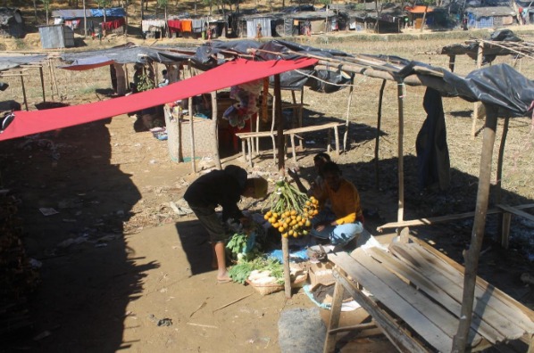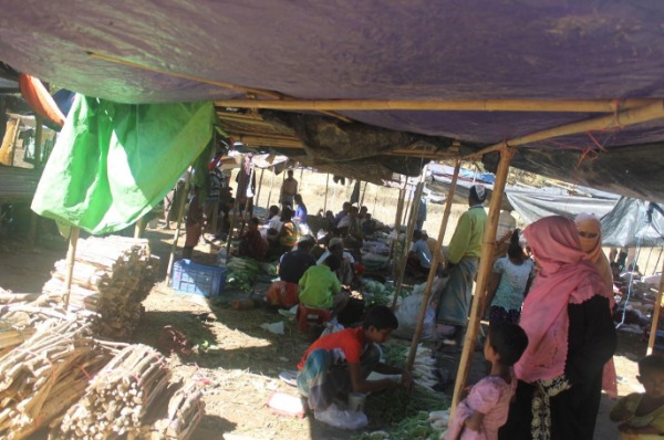 สิ่งที่ผู้เขียนพบคือ มีค่ายผู้ลี้ภัยแห่งหนึ่งตั้งอยู่ติดริมถนนใหญ่ ซึ่งอาจกล่าวได้ว่าเป็นค่ายผู้ลี้ภัยแรกที่มีการสร้างขึ้นมานานมากกว่า 15 ปี และเป็นค่ายที่มีจำนวนประชากรมากที่สุด บริเวณปากทางของค่ายถูกสร้างให้เป็นลานเอนกประสงค์สำหรับการพักผ่อนและเล่นกีฬาของเยาวชน นอกจากนั้นยังมีพื้นที่ส่วนหนึ่งถูกกันให้เป็น “ตลาดตอนเช้า” สำหรับผู้ลี้ภัยที่เข้ามาจับจ่ายใช้สอยสินค้าหรืออาหารมาประทังชีวิตนอกจากที่ได้รับจัดสรรจากองค์กรการกุศล ตัวอย่างของสินค้าที่ถูกนำมาขายส่วนใหญ่ เป็นจำพวกอาหาร ผักสด ปลาแห้ง เครื่องเทศ ฟืน ไก่มีชีวิต ซึ่งส่วนหนึ่งของสินค้าเหล่านี้มีการนำเข้ามาจากชุมชนภายนอกและเป็นไปเพื่อการดำรงชีวิเท่านั้น พ่อค้าในตลาดคือคนกลุ่มเดิมที่ปรับเปลี่ยนหน้าที่พร้อมกันกับการฟื้นฟู้และสร้างอัตลักษณ์ของพ่อค้าขาวโรฮิงยาขึ้นมาใหม่แต่ครั้งนี้ อัตลักษณ์มิได้ถูกสร้างขึ้นด้วยกิจกรรมทางเศรษฐกิจแบบเดิม หากแต่เป็นกิจกรรมทางเศรษฐกิจที่ถูกจำกัดด้วยพื้นที่ถูกควบคุมที่เรียกว่า “ค่ายผู้ลี้ภัย”
