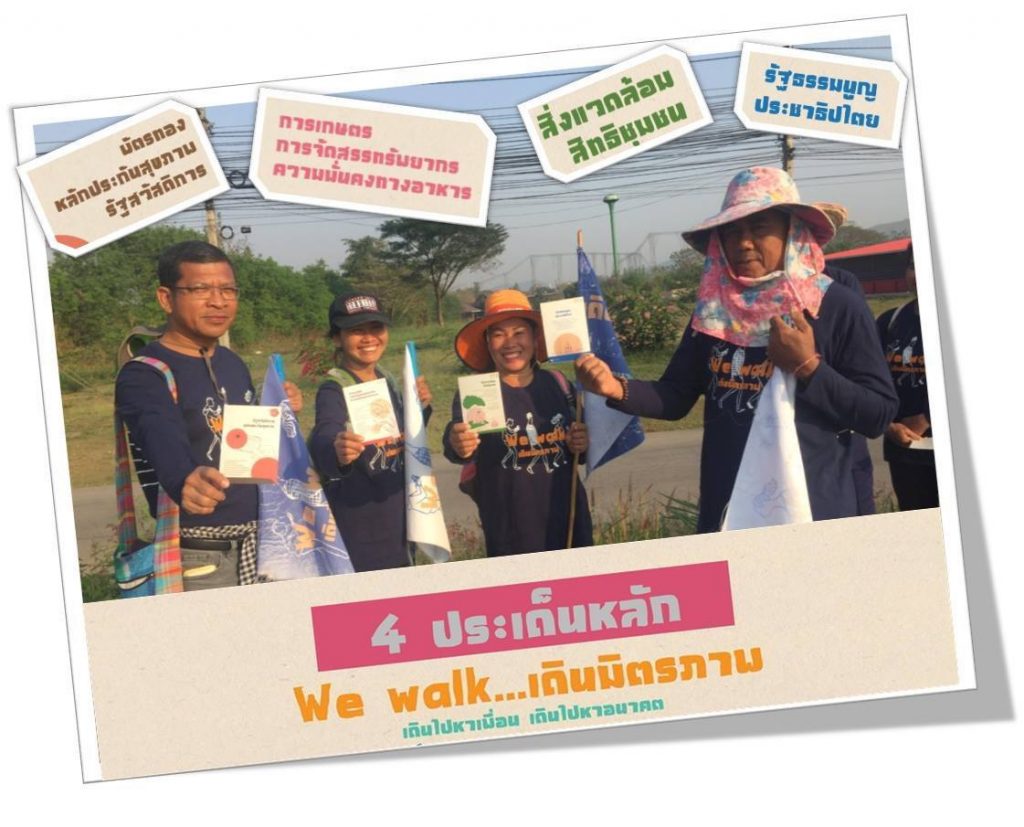 ขณะที่การจัดกิจกรรม We Walk เดินมิตรภาพ ยังคงดำเนินอย่างต่อเนื่องโดยมีชาวบ้านจากเครือข่ายต่างๆ อาทิ สมัชชาคนจน มาร่วมผลัดเปลี่ยนหมุนเวียนกันเดินเท้ามุ่งหน้าไปยังจังหวัดขอนแก่น โดยคาดว่าในช่วงเย็นจะหยุดพักอยู่แถวลำตะคอง จังหวัดนครราชสีมา ซึ่งระหว่างทางได้มีการแจกเอกสารจุดประสงค์ของการเดินในครั้งนี้