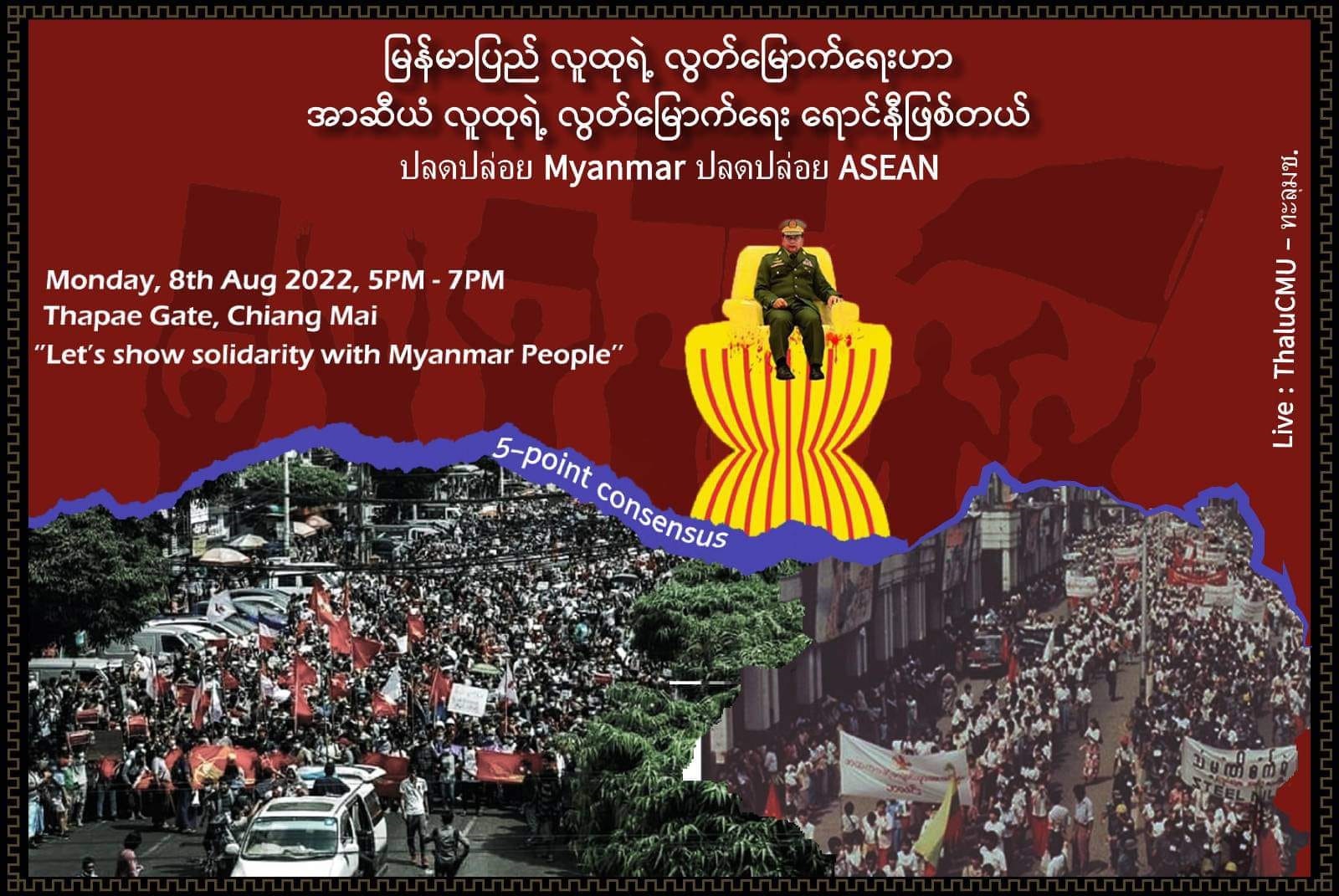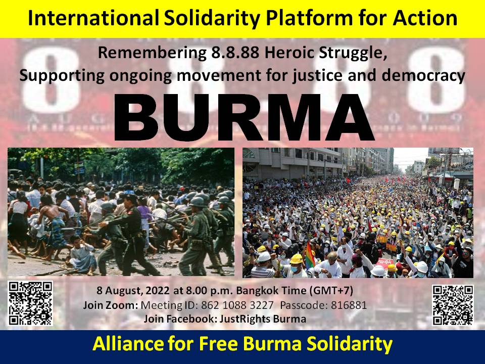 ผู้สื่อข่าวรายงานว่า ในวันที่ 8 สิงหาคม 2665 จะครบ 34 ปี เหตุการณ์ที่ประชาชนและพระสงฆ์ในประเทศพม่านับแสนคนลุกขึ้นประท้วงรัฐบาลทหารพม่า โดยมีนักศึกษาเป็นแกนนำ หรือที่รู้จักกันดีและเรียกสั้นๆว่าเหตุการณ์ 8888 (วันที่ 8 เดือน 8 คศ.1988) ซึ่งได้เกิดการนองเลือดและมีผู้เสียชีวิตนับพันคนจากการปราบปรามของทหารพม่า โดยในหลายพื้นที่ในประเทศไทยจะมีการจัดกิจกรรมรำลึกเหตุการณ์ดังกล่าว เช่น กลุ่มนักกิจกรรมในเชียงใหม่ได้จัดงานรำลึกประวัติศาสตร์ขึ้นที่ประตูท่าแพ จ.เชียงใหม่ เวลา 17.00-19.00 น. กลุ่มภาคีเพื่ออิสรภาพแห่งพม่าจัดเสวนาทางระบบซูม และถ่ายทอดสดทางเฟสบุค เพื่อสนับสนุนการต่อสู้ประชาธิปไตยในพม่า เวลา 20.00 น.
