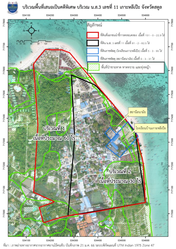 รายงานข่าวแจ้งว่า กรณีบุกรุกพื้นที่ราชพัสดุคือโรงเรียนเกาะหลีเป๊ะ และสถานีอนามัยที่ประชุมมีมติเห็นชอบตามการดำเนินงานของกรมธนารักษ์ โดยที่ดินแปลงติดกับโรงเรียนที่เอกชนมีการสร้างรั้ว สร้างประตู ให้ อบต.เกาะสาหร่าย มีคำสั่งระงับการก่อสร้าง รวมถึงรื้อถอนสิ่งที่ก่อสร้างไปแล้ว และดำเนินการใด ๆ จนกว่าการแก้ไขปัญหาเรื่องนี้จะเสร็จสิ้น และมอบให้ผู้บังคับการตำรวจภูธรจังหวัดสตูลไปสืบสวนสอบสวนว่าการดำเนินงานภาครัฐที่เกี่ยวข้องได้ดำเนินการครบถ้วนถูกต้องหรือไม่ และรายงานผลให้ประธานทราบภายใน 7 วัน