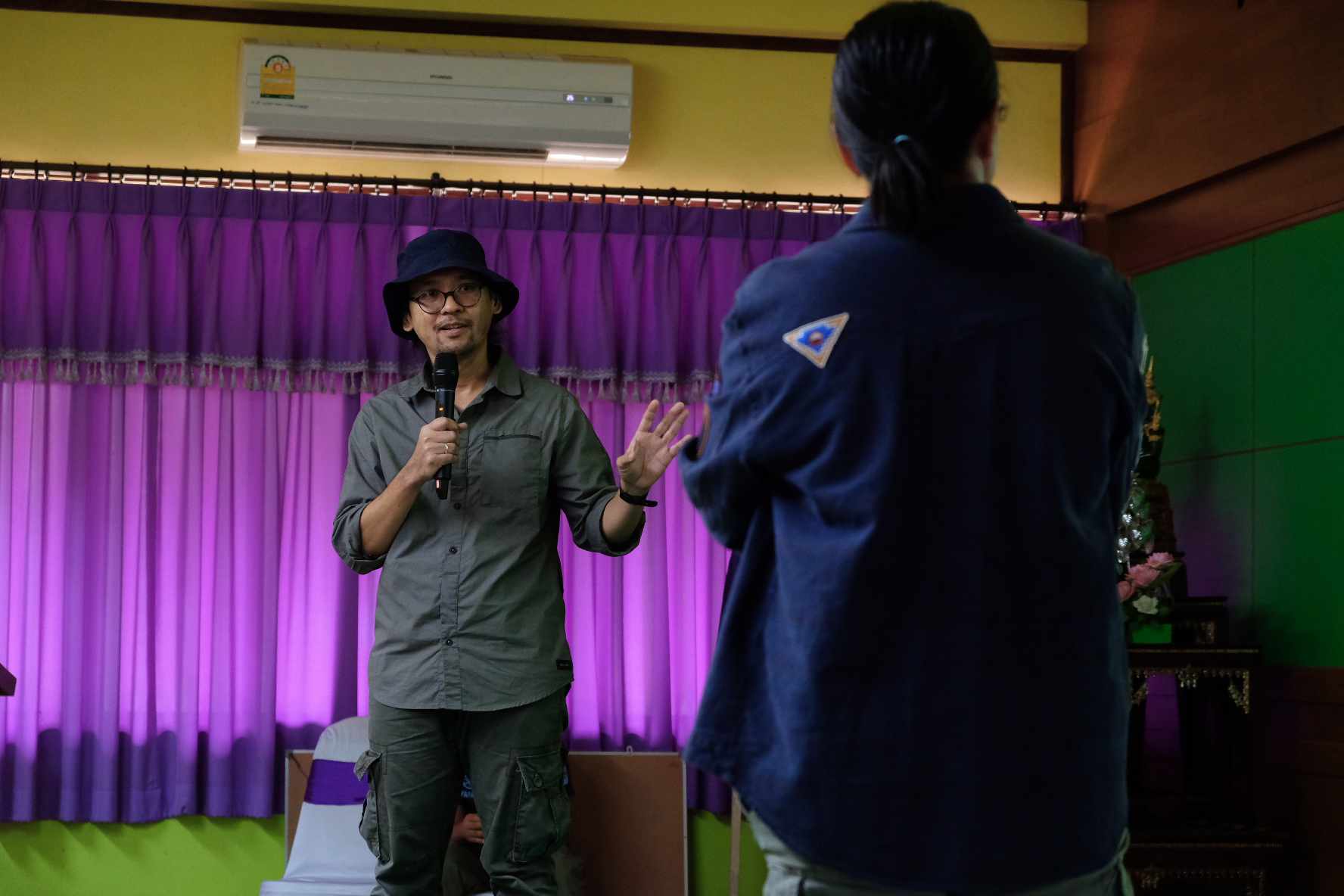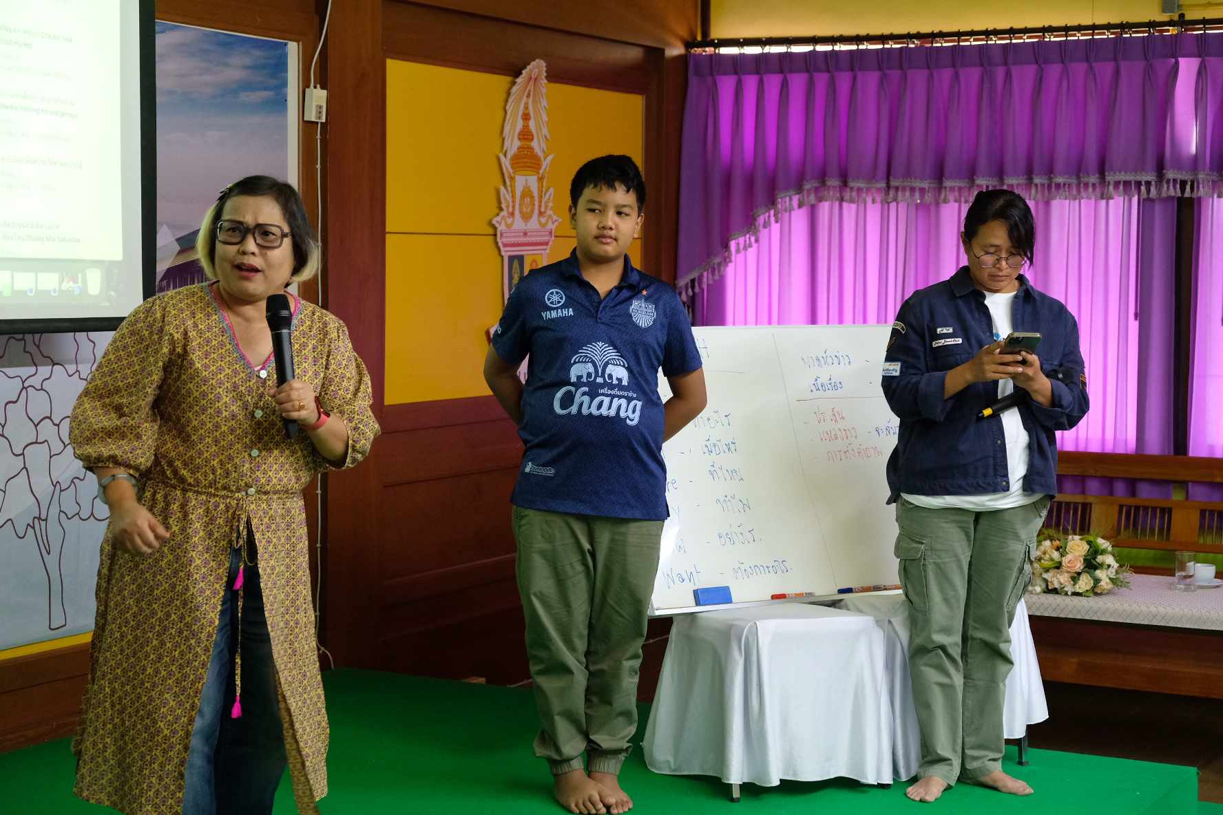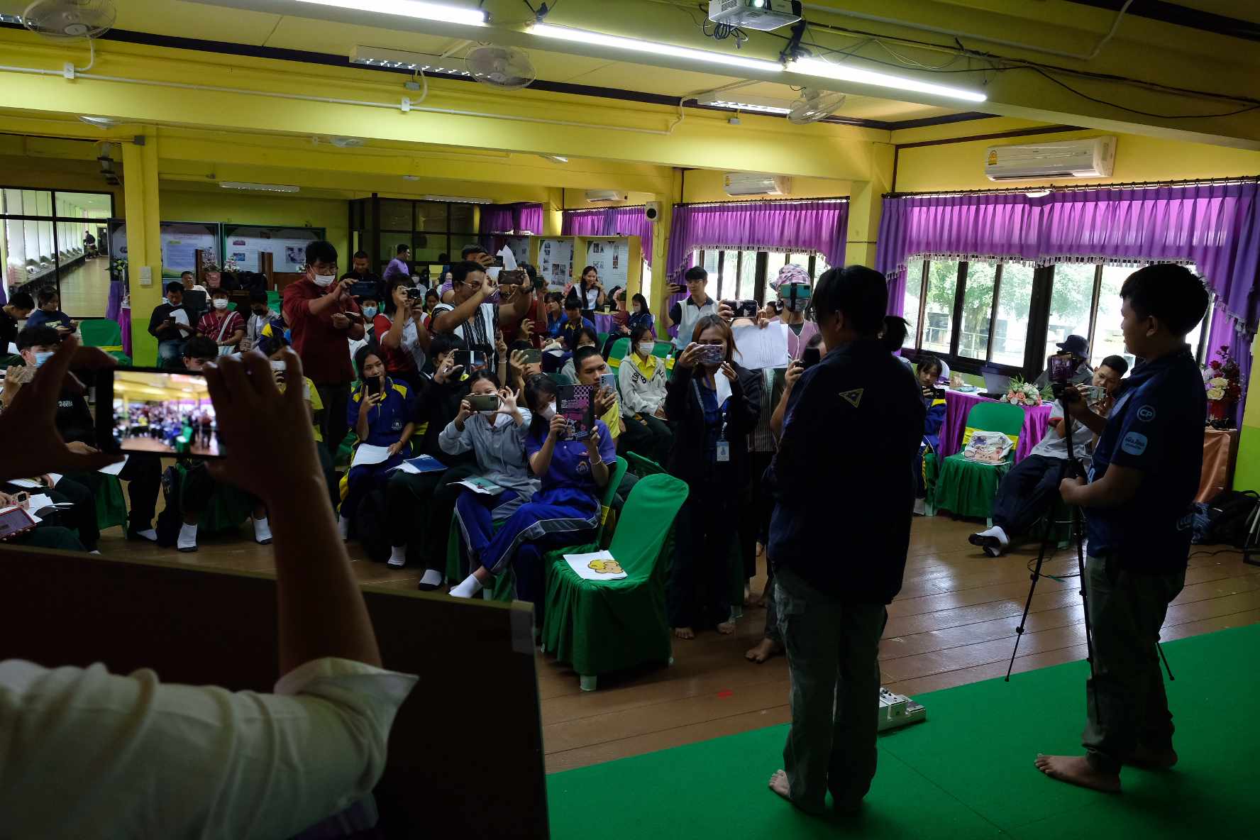 เยาวชนหลายกลุ่มในมือกำลังถือโทรศัพท์ บางกลุ่มมีกล้องถ่ายภาพ บางคนถือขาตั้งกล้องและไมโครโฟน เดินไปสัมภาษณ์คนนั้นคนนี้ ทำให้แหล่งธรรมชาติในป่าอันเคยเงียบเชียบกลับมีชีวิตชีวา