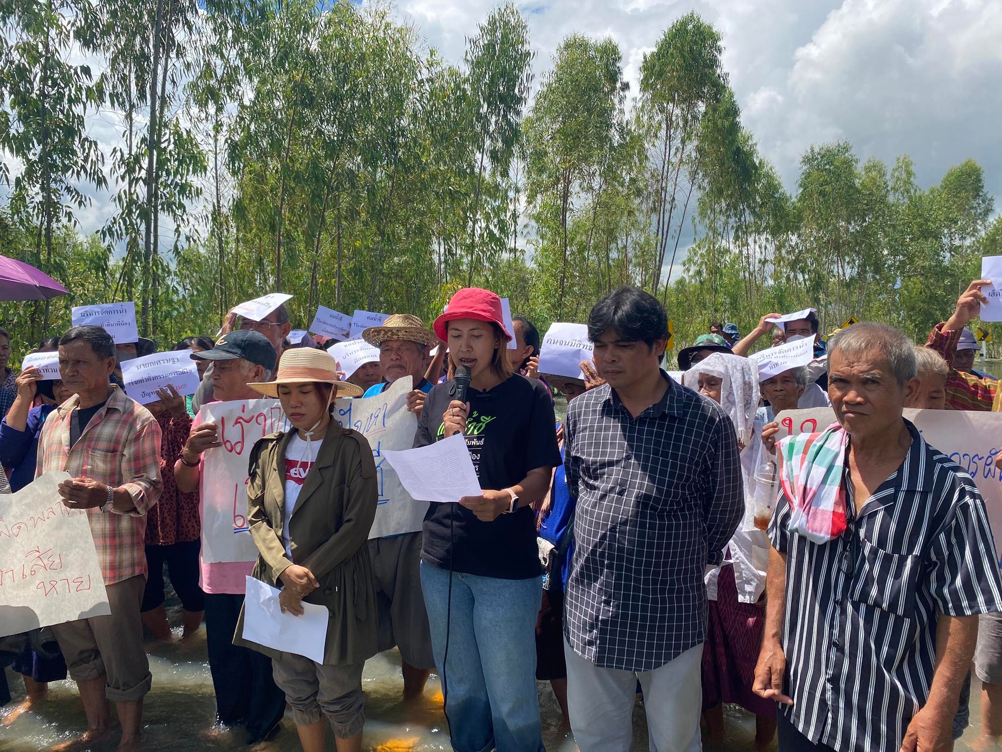 ขณะที่นางสาวรสริน หาระพันธุ์ อายุ 41 ปี กรรมการเครือข่ายชาวบ้านลุ่มน้ำชี จังหวัดยโสธร ได้อ่านจดหมายเปิดผนึกถึงนายเศรษฐา เรื่องกรมชลประทานบริหารจัดการน้ำผิดพลาด ทำให้น้ำท่วมพื้นที่การเกษตรแบบ “ท่วมอีกแล้ว ท่วมอยู่ ท่วมต่อ ท่วมซ้ำ ท่วมซาก ท่วมกินระยะเวลายาวนาน” โดยเนื้อหาระบุว่าจากปรากฏการณ์ปัญหาน้ำท่วมพื้นที่การเกษตรของชาวบ้านลุ่มน้ำชี ไม่ใช่ว่าจะพึ่งเกิดขึ้นในปีนี้ แต่เป็นปัญหาที่ทางเครือข่ายชาวบ้านลุ่มน้ำชี จังหวัดยโสธร จังหวัดร้อยเอ็ด ได้ติดตามสถานการณ์ปัญหามาตลอดระยะเวลาที่เรียกร้องให้รัฐบาลดำเนินการแก้ไขปัญหามาเข้าปีที่ 15 แล้ว
