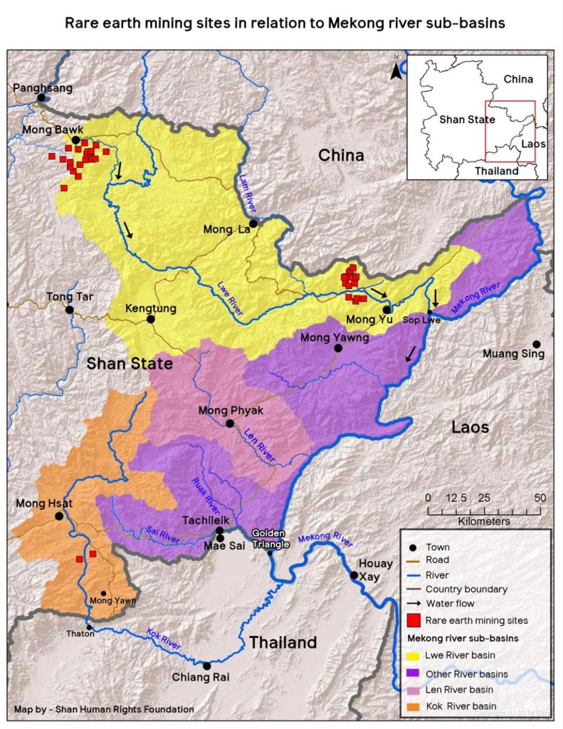 ผศ.ดร.อริศรากล่าวว่า รายงานจากสำนักข่าวชายขอบเปิดเผยว่าพื้นที่ต้นน้ำกกและต้นน้ำสายในรัฐฉานตอนใต้มีเหมืองทองคำและเหมืองแรร์เอิร์ธ (Rare Earth Mines) รวมกว่า 20 แห่ง หลายแห่งตั้งอยู่ใกล้แม่น้ำในรัศมีไม่ถึง 1 กิโลเมตร บางแห่งอยู่ภายใต้อิทธิพลของกองกำลังติดอาวุธ United Wa State Army (UWSA) ซึ่งอยู่นอกอำนาจรัฐ ส่งผลให้กิจกรรมเหมืองเหล่านี้ขาดการควบคุมทางสิ่งแวดล้อม การตรวจสอบย้อนกลับ และกลายเป็นแหล่งสะสมสารพิษที่ไหลลงสู่แม่น้ำกกก่อนลงสู่แม่น้ำโขง ขณะที่ Stimson Center (2025) ซึ่งเป็นสถาบันวิจัยด้านนโยบายระหว่างประเทศของสหรัฐฯ ยืนยันว่ามีเหมืองแรร์เอิร์ธมากกว่า 540 แห่งกระจายอยู่ทั่วลุ่มน้ำโขงและสาขา