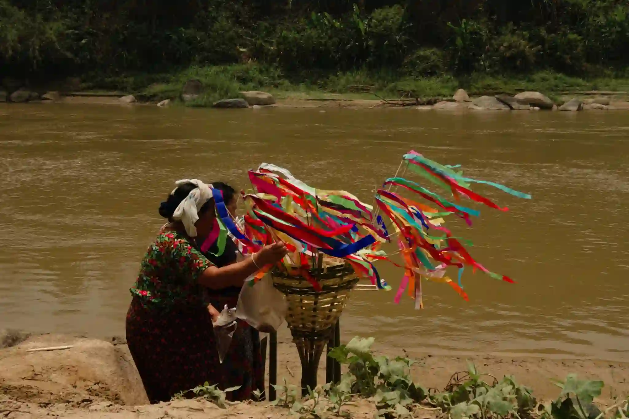 สำหรับชาวลาหู่ในหมู่บ้านผามูบ อ.เมือง จ.เชียงราย ซึ่งตั้งอยู่ริมแม่น้ำกก พิธีศาลาเตเวยังได้รับการเติมเต็มด้วย “พิธีสืบชะตาแม่น้ำ” เพื่อย้ำเตือนว่าธรรมชาติที่ชุมชนพึ่งพาไม่ได้มีเพียงผืนป่าเท่านั้น แต่แม่น้ำกกก็เปรียบเสมือนเส้นเลือดใหญ่ที่หล่อเลี้ยงชีวิต เศรษฐกิจ และจิตวิญญาณของผู้คนในหมู่บ้าน