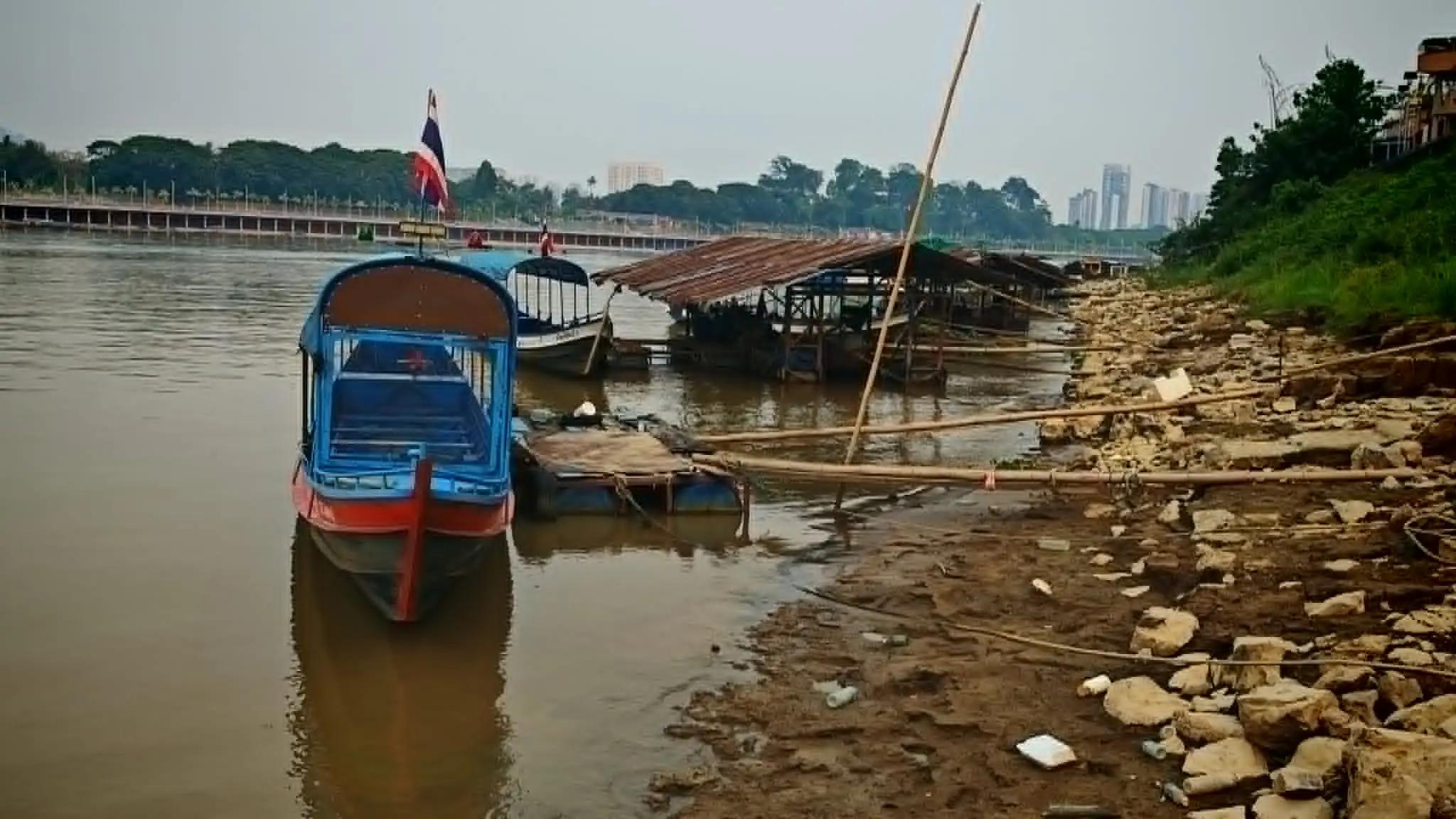 เครื่องสูบน้ำที่วางตลอดริมลำน้ำโขงใน อ.เชียงแสน จ.เชียงราย เพื่อสูบน้ำแม่น้ำโขงมาเล่นสงกรานต์ ขณะที่ประชาชนกำลังสนุกสนานท่ามกลางความอ้าวร้อนของอากาศ แม่น้ำโขงจึงเป็นที่พึ่งสำคัญของประชาชน ภาพเหล่านี้ช่วยสะท้อนให้เห็นการทำงานของหน่วยงานราชการและรัฐบาลได้ชัดแจ๋ว